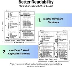 Elevate your Mac experience with our top-quality keyboard shortcut stickers, the perfect Macbook accessory! Boost productivity, streamline workflow, and navigate your Mac like a pro. With clearer print and layout for enhanced readability, improve productivity by quickly identifying keys. Suitable for all ages and skill levels, our stickers elevate computer proficiency at home or in the office. Displaying important shortcuts, they make navigating your Mac a breeze. Compatible with 13-16 inch MacBook Air and Pro models, our stickers work seamlessly across various Mac OS versions. Upgrade your Mac experience now with the best Macbook accessory – our high-quality keyboard shortcut stickers!