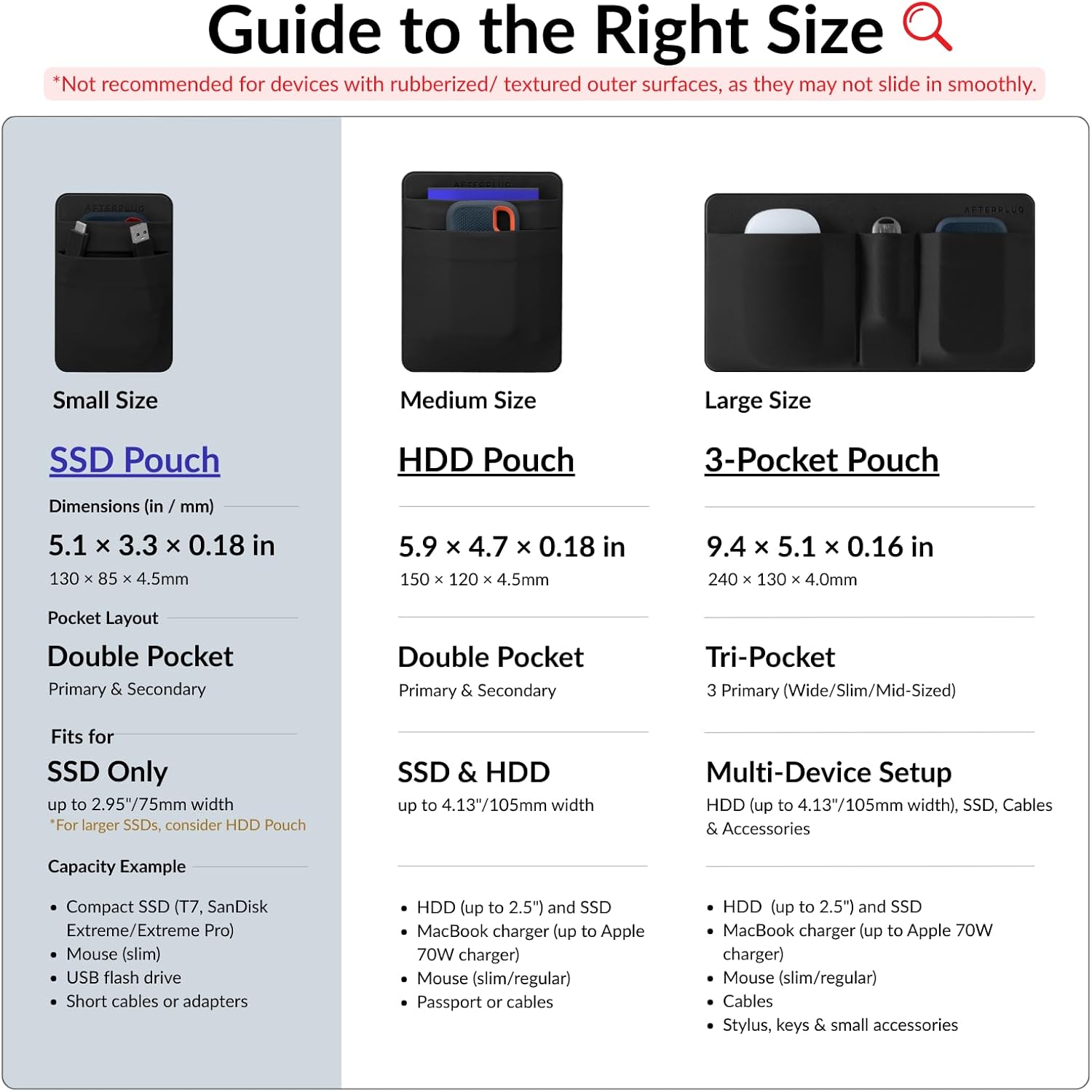- Universal Fit: Compatible with portable SSDs such as SanDisk Extreme/ Extreme Pro, Samsung T5/T7, Crucial X8, Apple Magic Mouse, AirPods, Airtag, SmartTag, Ledger Nano, USB cables, earbuds, small battery packs, cards, and more